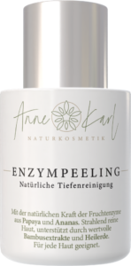 Von mir entwickelt, von Hand abgefüllt. Natürliche Fruchtenzyme lösen abgestorbene Hautzellen schonend – ohne Reibung, ohne Mikroplastik. Für einen ebenmäßigen, strahlenden Teint, auch bei empfindlicher Haut.