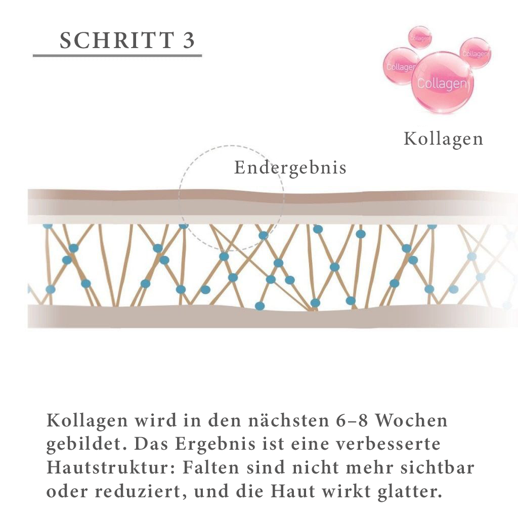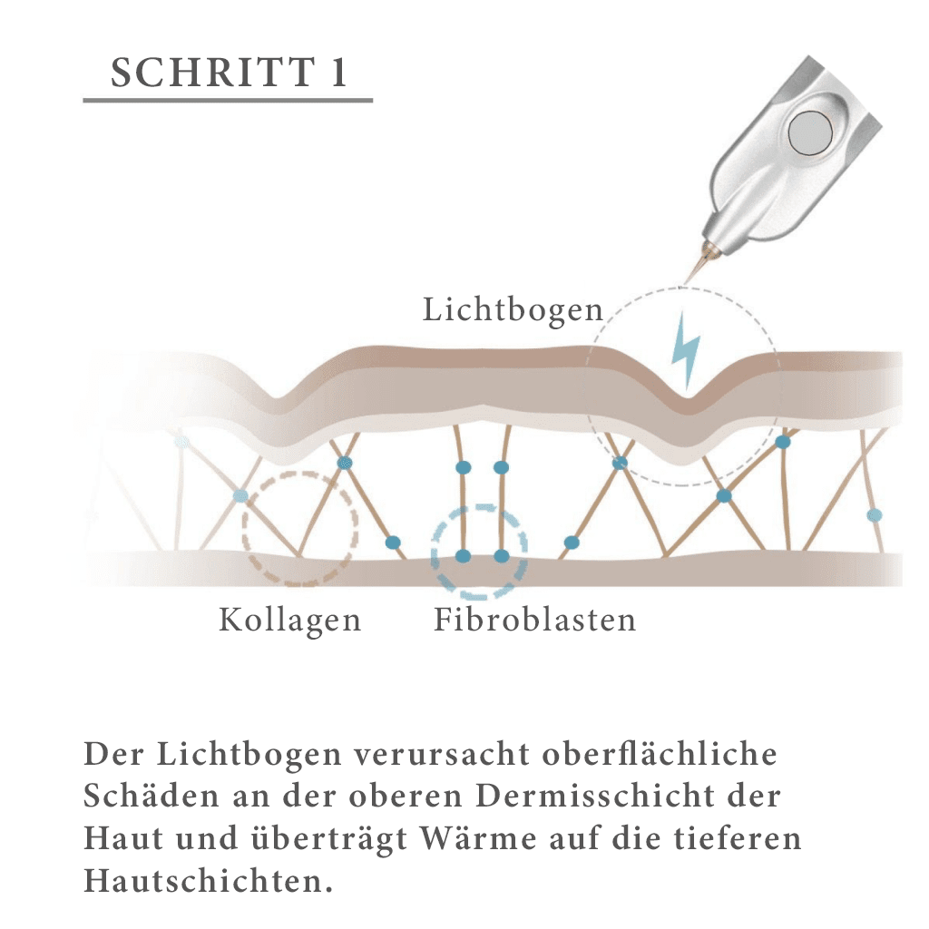 Der Plasmaimpuls regt die Zellen an, neues Kollagen zu bilden, das die Haut festigt und glättet. Kleine Fältchen, beispielsweise an den Augen oder im Mundbereich, können sichtbar reduziert werden.